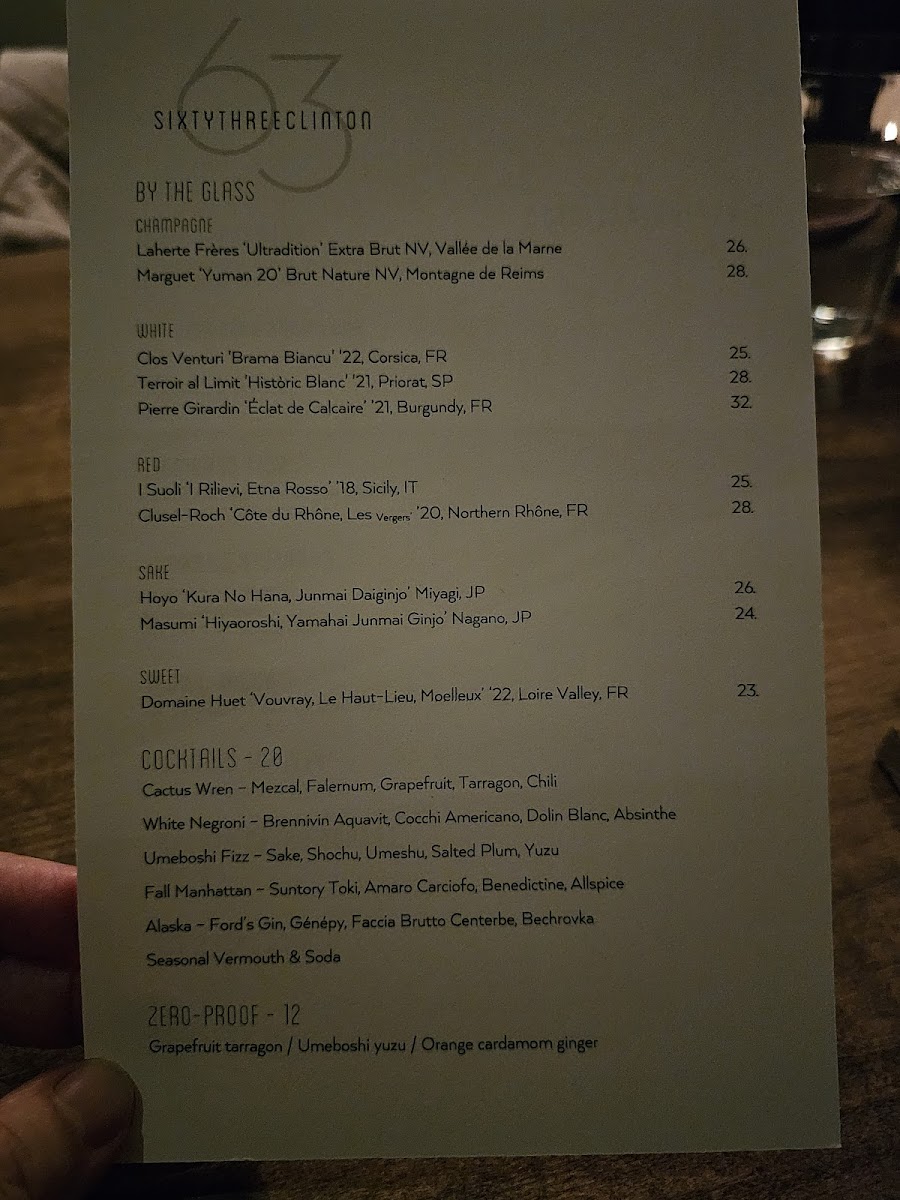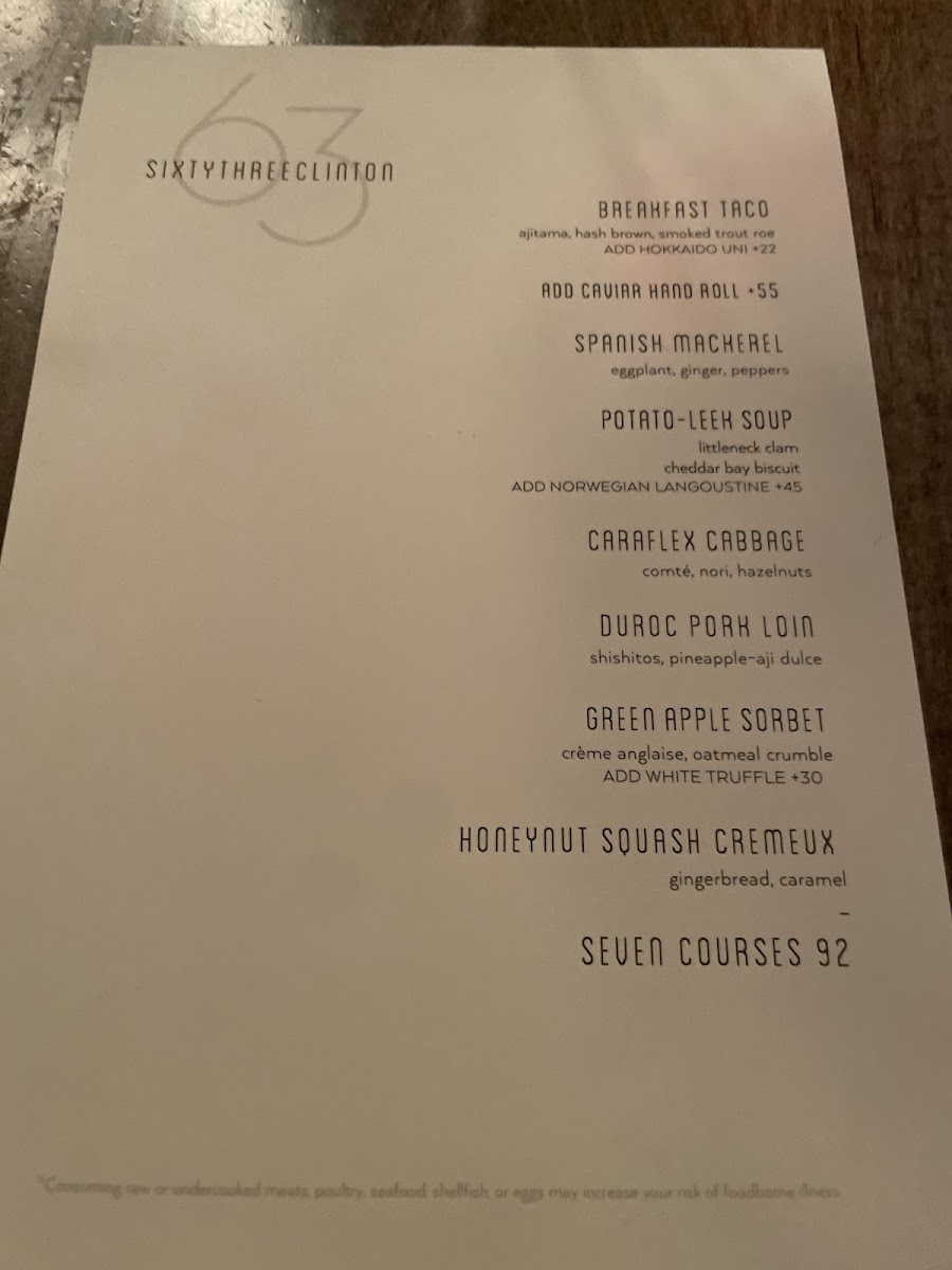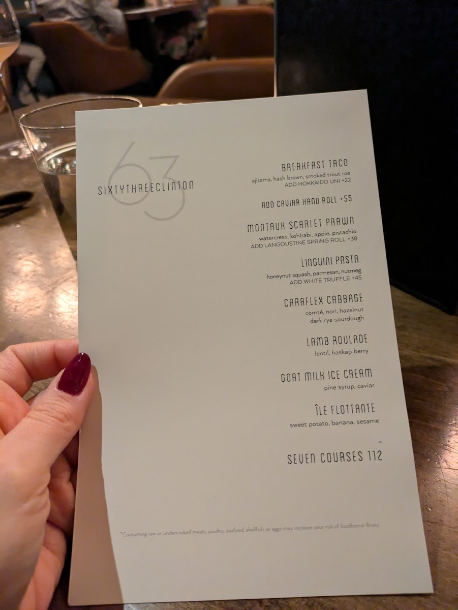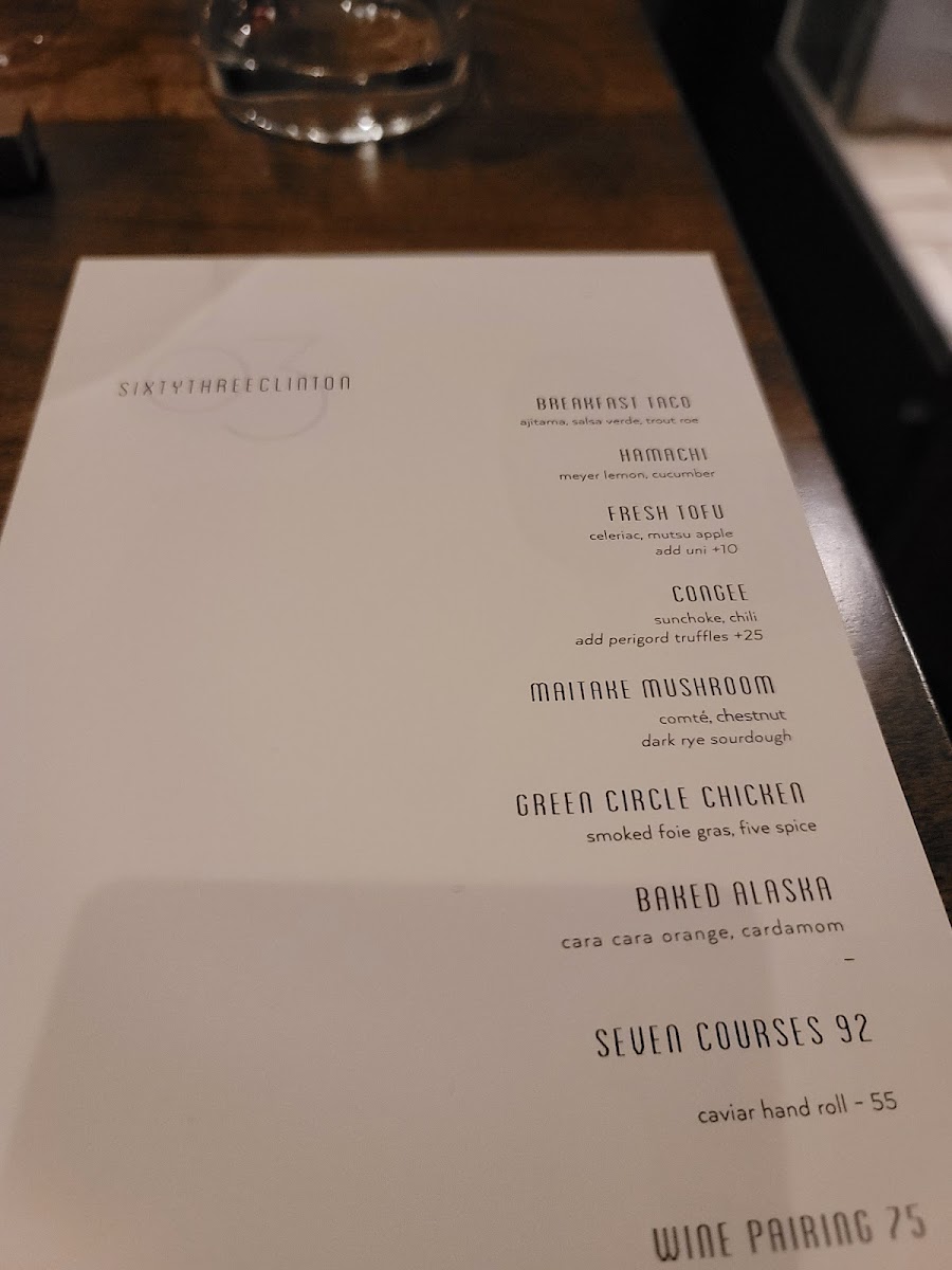 Welcome to Sixty Three Clinton, a culinary gem nestled in New York City's vibrant Lower East Side at 63 Clinton St. This restaurant promises an unforgettable dining experience where innovative cuisine meets exceptional service. The menu is a delightful journey through bold flavors, showcasing standout dishes like the tantalizing Uni Tacos and the highly praised Caviar Hand Roll. Reviewers rave about the Seafood Pasta and the comforting Cheese Soufflé, all crafted with meticulous attention to detail.